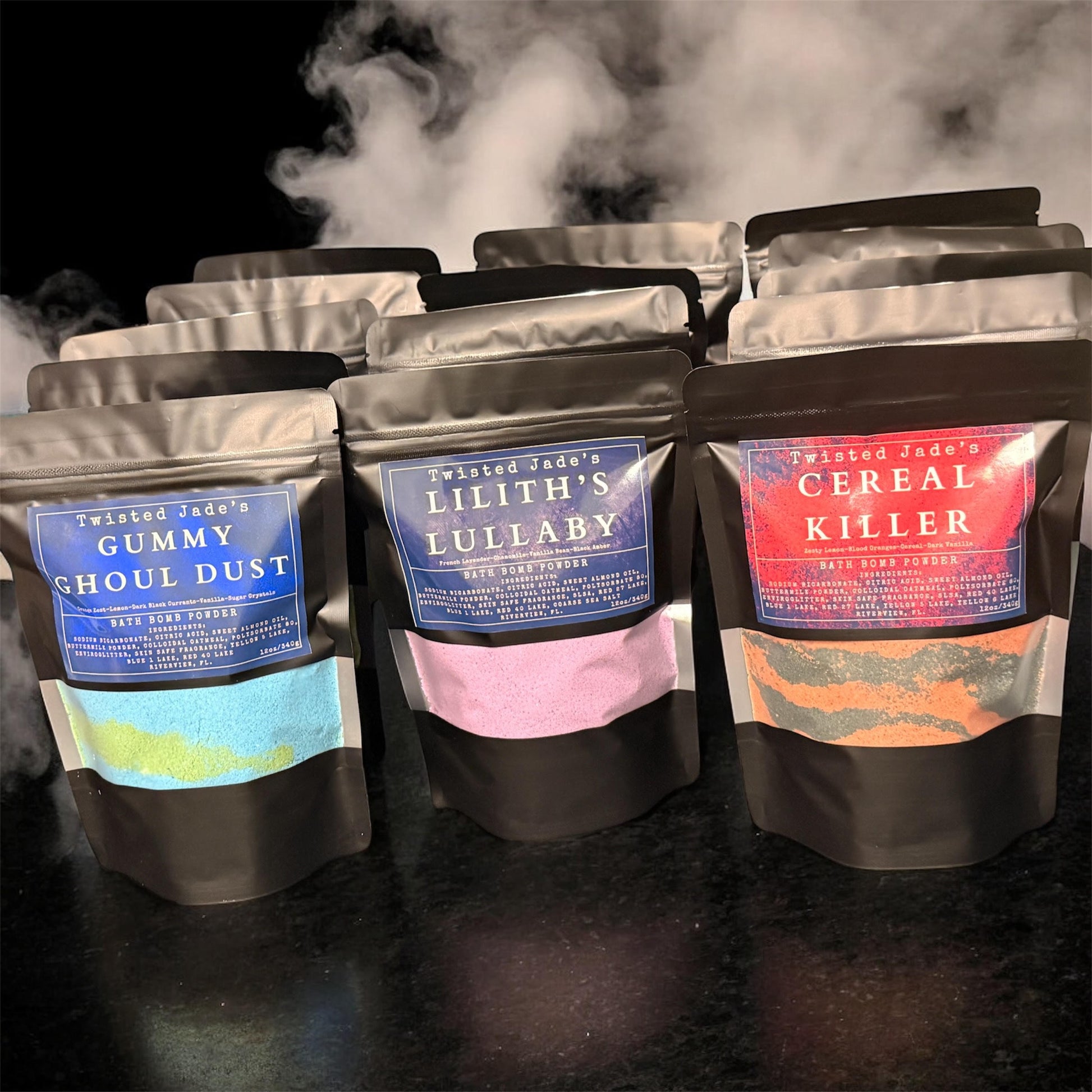 Turn your tub into a swirling cauldron of color, fragrance, and fizz with Twisted Jades Bath Bomb Powder. This spellbound blend is designed to elevate your self-care ritual—whether you crave something sweet, spooky, fresh, or darkly decadent.